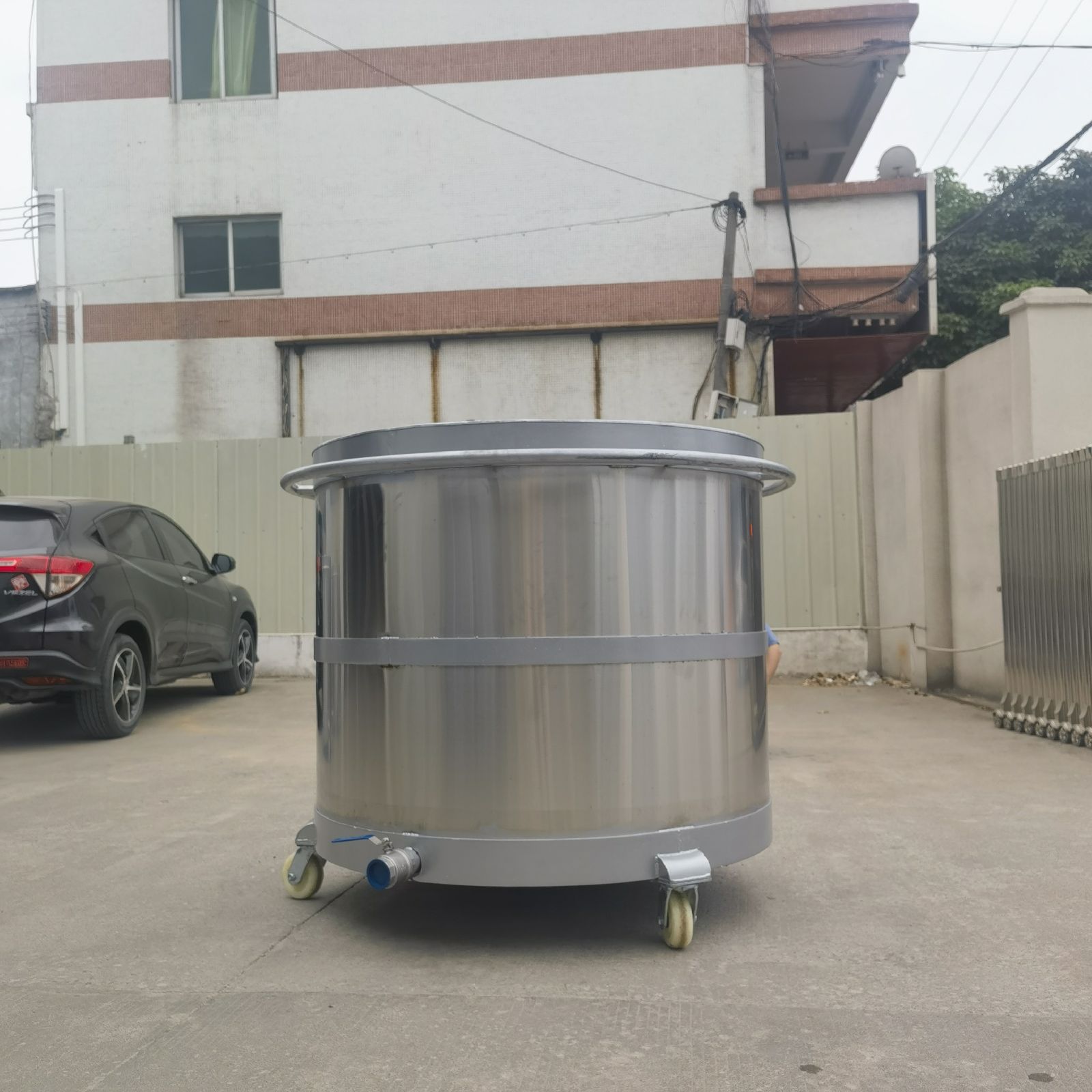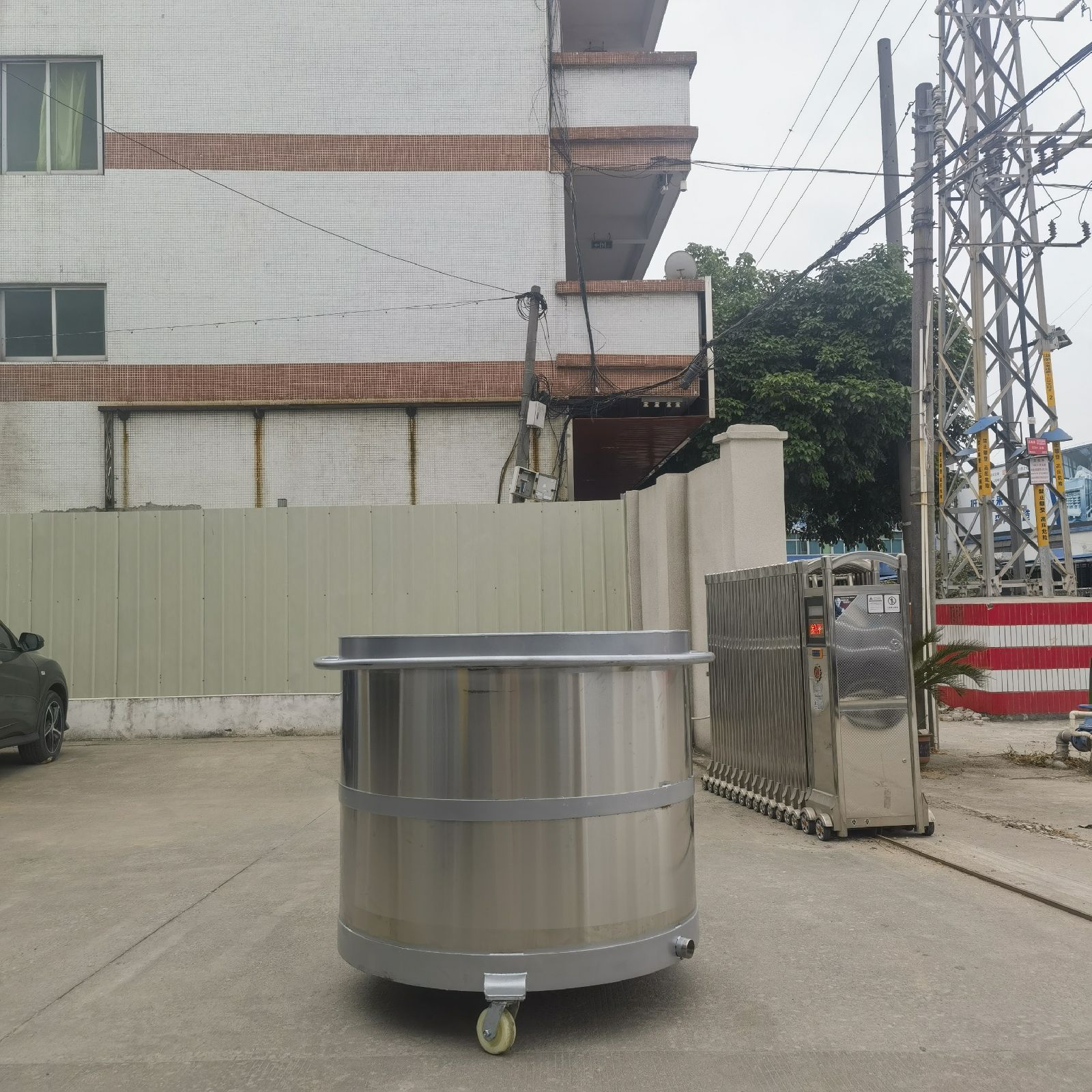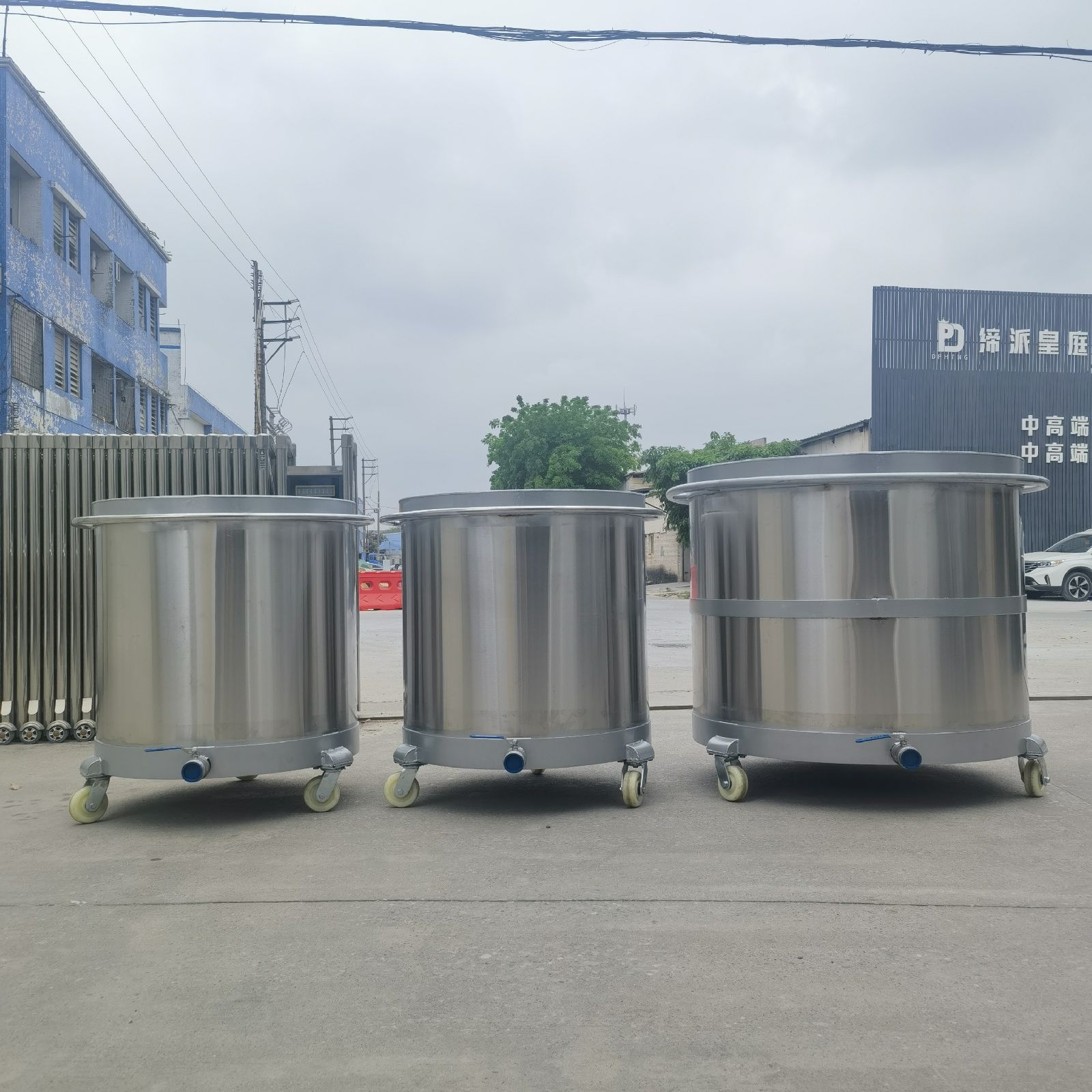 移动拉缸简称拉缸,主要作为小批量生产搅拌容器和小批量物料临时存放之用,设备材质选用进口不锈钢材料,焊接采用氩弧焊,焊缝处理美观;内外表面镜面抛光处理,易于清洗;底部带有倾斜角,出料干净,无残留;底部侧边带有出料阀,连接管路出料方便;上部可配有盖子,防止搅拌过程物料飞溅和溶剂类产品的挥发。
