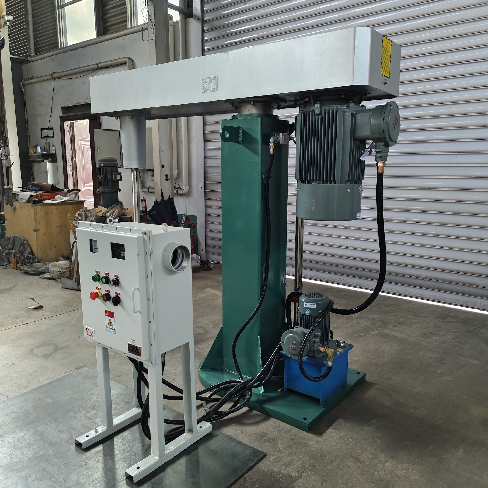 全防爆液压分散机主要用于溶剂型易燃易爆化工产品的生产,包括油漆、油墨、涂料、色浆、地坪漆、马路划线漆等。其核心功能是通过液压系统实现主轴和叶轮的无级调速,对物料进行高速剪切、撞击和粉碎,达到迅速分散、溶解的效果。