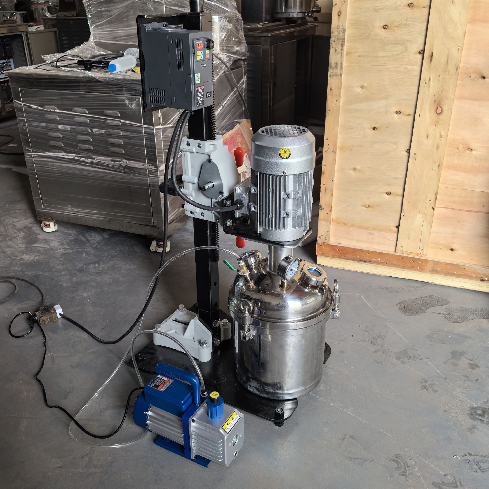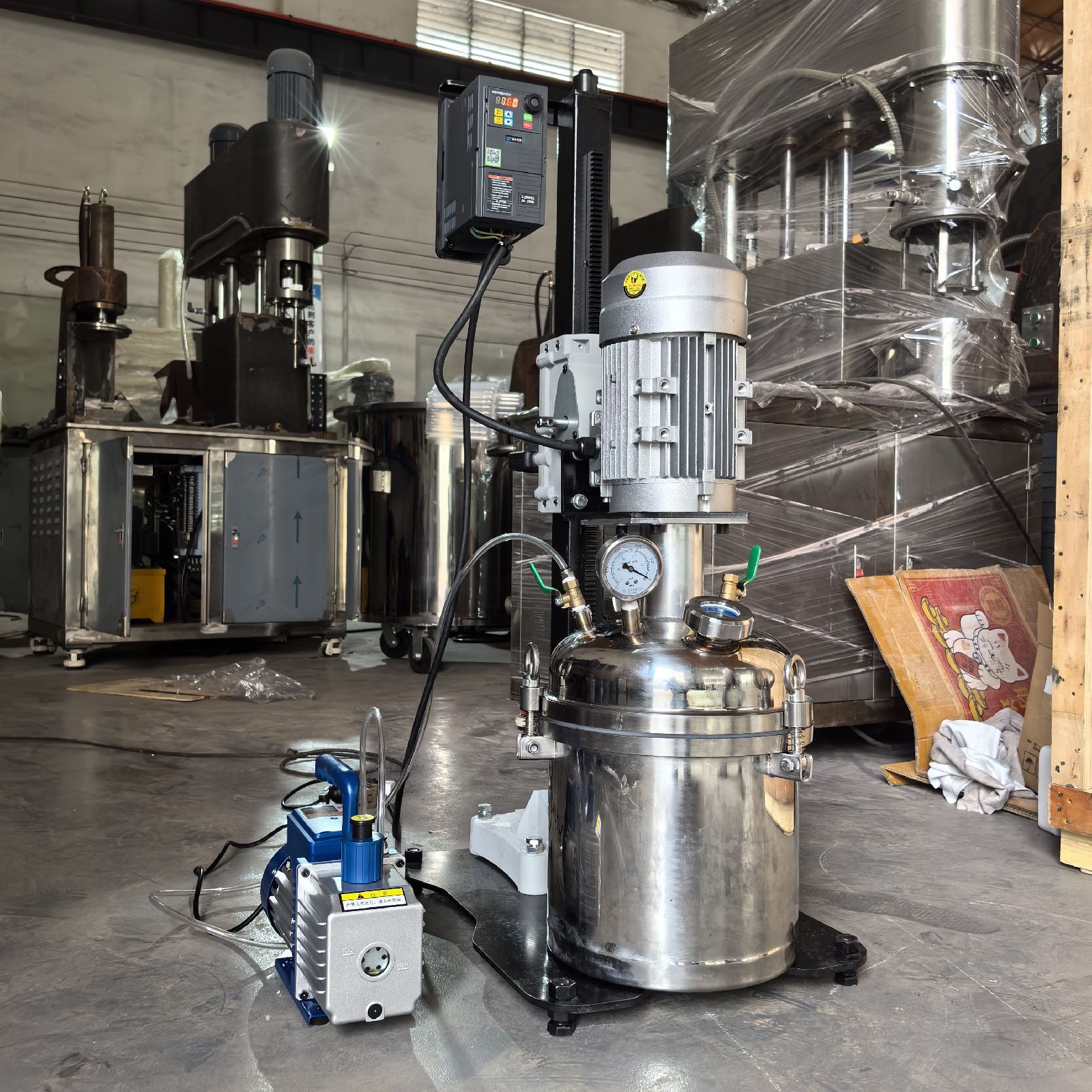 通过真空泵抽取容器内空气形成低压环境(真空度可达0.07MPa),有效减少气泡并提升分散细度。该过程可避免物料氧化,同时降低污染风险。